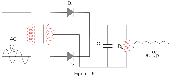 我们获得具有许多涟漪的脉动直流电压作为中心旋转的全波整流器的输出。我们不能使用这种脉动进行实际应用。