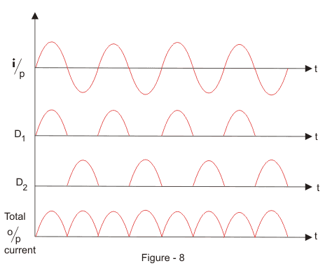 在正周期期间,二极管D1在负周期中进行,二极管D2进行和在正周期期间。