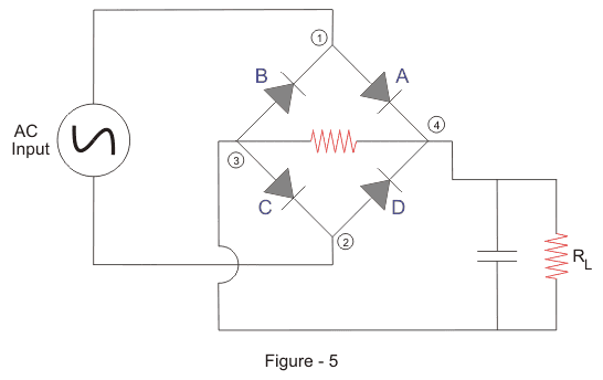我们使用二极管,即形成桥电路的A,B,C和D.电路图如下。
