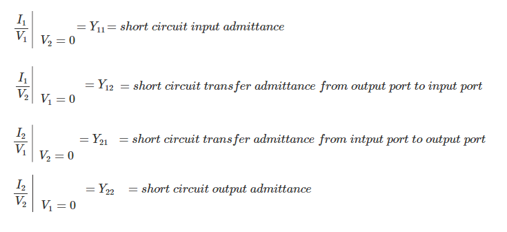 Y参数也称为“短路阻抗参数”,因为它们在开路条件下计算。也就是说我X=∞,其中x = 1,2是指流过一个流过端口的输入和输出电流两个端口网络。