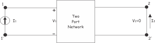 我们可以确定特定参数的值两个端口网络通过使短路输出端口和输入端口如下。