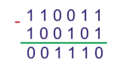 第一的二进制数是110011,第二二进制数为100101。补充或1的补100101是011010.现在通过添加1的LSB,我们得到的补充号码的LSB,