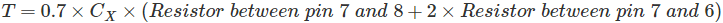 由555个定时器组成的方波的周期长度可以用公式计算: