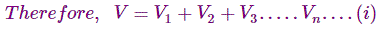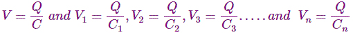 让我们考虑电容C1C2C3.C……n,电容器串联组合的等效电容为c电压降在电容器被认为是V1, V2, V3.V……n,分别。
