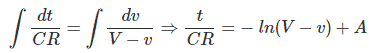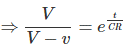 现在,在接通电路时,电压横跨电压电容器是零。这意味着,在t = 0处V = 0。