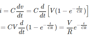 因此,初始电流为v / r。现在逐渐地在电容器上开发电压,并且这种开发的电压与极性相反电池。结果是当前在电路中逐渐减少。当电压跨越电容器变得相等且与电池电压相反,电流变为零。电压在充电期间逐渐增加电容器。让我们考虑电容器上电压的增加速率是任何瞬间t的DV / DT。通过该瞬间通过电容器的电流是