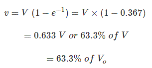因此,在时间t = Rc,充电电流的值变为初始充电电流的36.7%(v / r = iO.)当电容器完全没有充电时。这次被称为时间常数电容电容与电容值C Farad以及电容器串联电阻R欧姆。在该电容器上产生的电压的值是