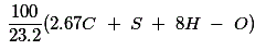 从燃烧理论的C, S和H2发现2.67通用1通用碳燃烧所需氧气,这意味着2.67摄氏度通用C通用需要碳,氧1通用1通用硫磺燃烧所需氧气,这意味着通用汽车需要氧气年代通用硫和8通用1通用氢燃烧需要氧气,这意味着8 H通用需要氧气H通用氢。