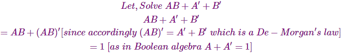 我们已知的基本操作二进制算术如二进制添加那二元减法那二进制乘法和二进制部门。现在我们将介绍最重要的部分二进制算术很多布尔代数站立,即De-Morgan的定理这就是所谓的De-Morgan的法律经常。