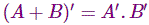 | 一种 | B. | 一种' | B. | A + B. | A.B. | (A + B)' | A'.B' | (A.B)' | 一个'+ b' |