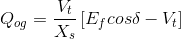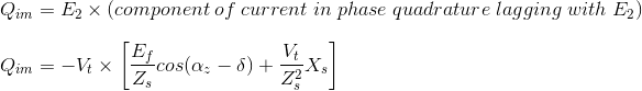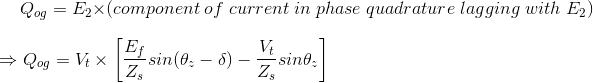 现在我们推导无功功率流的表达式同步发电机。我们可以推导出发电机输出端的无功功率表达式为