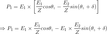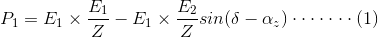 下面是上述电路的相量图:为了画出相量图,先画出E1电压和电流E1/Z,标角E1和E.1/ z为θz。同样画出相量E2和E.2/Z,这样E和Z的夹角1和E.2应该是δ。通过绘制填写相量图电压降IX和IR如上所示。现在让我们推出源E提供的电力的表达式1。