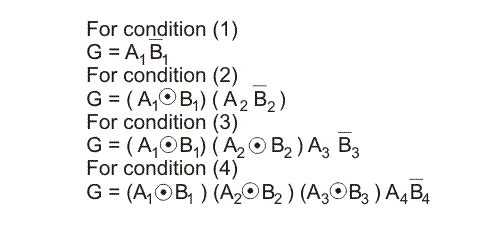 假设我们有两个二进制数字我们必须根据其幅度进行比较。这两个数字的一个数量可以更大,等于或小于另一个数字。调用在二进制数之间执行此比较任务的数字电路数字比较器。为了更好地了解,让我们考虑两个单位二进制数字A和B. a和b的值是0或1,没有其他。现在让我们逻辑地设计一个电路,该电路将具有两个用于B的两个输入,并且具有三个输出端子,一个用于A> B条件,一个用于A = B条件,一个用于