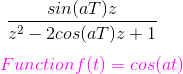 这个函数的拉普拉斯变换是a/(s2+ A.2),对应的f(k) = sin(akT)。现在这个函数的z变换是
