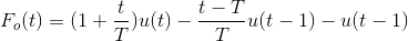 在框图中,我们给电路一个输入f(t),当我们允许输入信号通过这个电路时,它将输入信号重新转换为连续信号。一阶保持电路的输出如下图所示:现在我们感兴趣的是找出一阶保持电路的传递函数。写出输出方程
