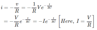 让我们假设电压电容器在充满电的情况下的电压是V伏。一旦…电容器短路时,电路的放电电流为- V / R安培。但在打开的瞬间,在t =+0的当前的通过电路