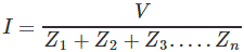 因此,电压在每个阻抗上是相同的,它等于V/n,即源电压除以串联连接的阻抗数。
