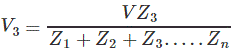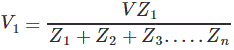 电压划分规则在我们找到的时候是应用的电压在一些阻抗。我们假设阻抗为Z1, Z2, Z3.,...... ..n是串联的和电压源V通过它们连接,如下图所示。