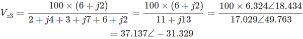 该电流通过串联连接的所有阻抗。因此,z的电压3.是由