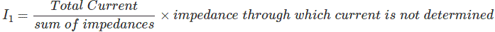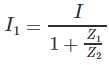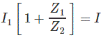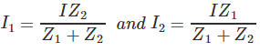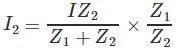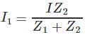 电流I通过并被分为I1和我2如图所示,在这两个阻抗的连接处。我1和我2通过Z1和Z2分别。我们的目标是确定I1和我2用I, Z表示1和Z2。