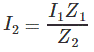 当Z1和Z2并行连接,电压降每一个都是一样的。因此,我们可以写