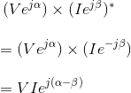 这个(α - β)只不过是电压和电流之间的角度,因此这是相差电压通常表示为φ的电流。