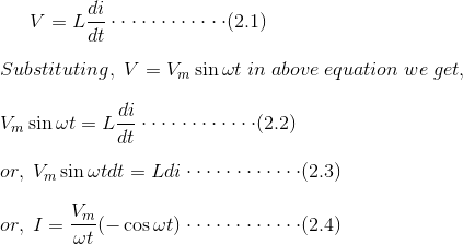 电感器是无源组件。每当交流通过电感时,它就会反对流动当前的通过产生反弹emf。所以,适用电压而不是导致它需要丢失,而是需要平衡所产生的后反电势。由跨正弦电压源V的纯电感组成的电路rms.如下图所示。