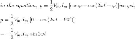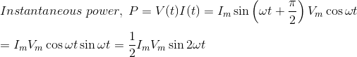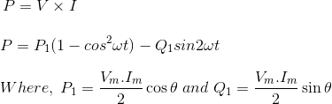 第二项是vm。一世m.sinφsin2ωt,它将具有负和正循环。因此,该组件的平均值为零。该组件被称为反应部件,因为它在不进行任何有用的工作的情况下在线来回行驶。