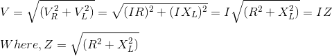 纯欧姆电阻和电感器串联连接,如图所示(g)所示电压源V.然后跨越r将是vR.= IR,穿过L就是VL.第九=L.。