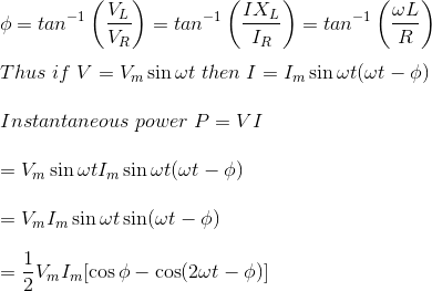 现在考虑一个情况,当单相电源电路是完全感应的,这意味着电流滞后于电压角度φ= + 90O.。放Φ= + 90O.