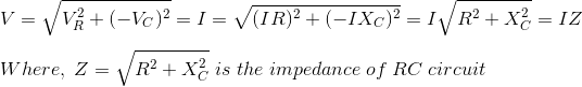 我们知道当前的在纯电容中,引线电压和纯欧姆电阻是同相的。因此,在RC电路中,净电流以φ角引出电压。如果V = Vmsinωt,我将是我mSIN(ωt+φ)。