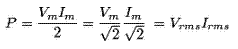 因此,功率由两项组成,一项为常数项0.5 Vm一世mCosφ和其他波动项0.5 Vm一世mCOS(ωt - φ)为整个循环的值为零。