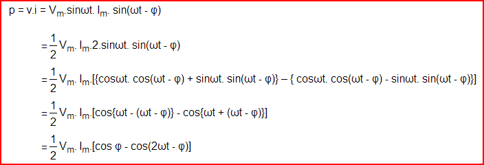 以上表达有两个辅音;第一个是vm。一世m.cosφ(1 - cos2ωt)永远不会为负,因为(1 - cos2ωt)的值始终更大或等于零但不能具有负值。