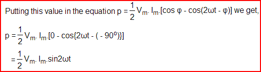 这是完整周期的值为零。因此,通过纯欧姆电阻器的功率给出,如图所示(c)所示。
