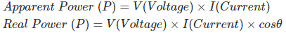 因此,P = VICOSφ=(RMS电压×RMS电流×COSφ)瓦特