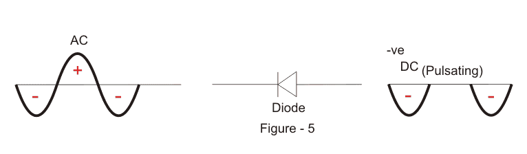 正如你可以看到在图5下面,二极管现在是在相反的方向。因此,只有当交流波形处于负半周时,二极管才会正向偏置。