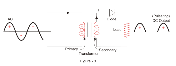 我们现在将通过半波整流器如何将AC电压转换为DC输出的过程