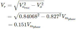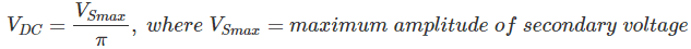对于半波整流器,RMS负载电流(Irms.)等于平均电流(i直流)乘以π/2。因此,负载电流(Irms.)对于半波整流器是: