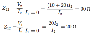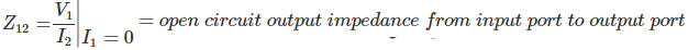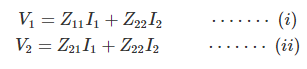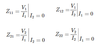 z参数也被称为“开路阻抗参数”,因为它们是在开路条件下计算的。也就是说,我x=0,其中x= 1,2为流过a端口的输入输出电流两个端口网络。