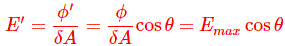 因此,ΔA接收的通量减少了因子Cosɵ。