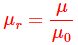 另一介质或物质的渗透率仅用μ表示。相对渗透率是任何物质的渗透率与自由空间的渗透率之比,记为μr,即