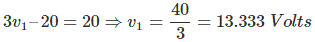 因此节点电压为v1= 13.33伏特和v2= 20伏。