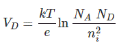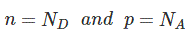 让我们考虑捐赠者浓度n的pn结D.和受体浓度n一种。让我们还假设所有供体原子都捐赠了游离电子,并成为阳性供体离子,并且所有受体原子都有接受电子并产生相应的孔并成为负受体离子。所以我们可以说自由电子(n)和供体离子的浓度D.是相同的且同样的,孔(p)和受体离子的浓度(n一种) 是相同的。在这里,由于无意的杂质和缺陷,我们忽略了半导体中产生的孔和自由电子。