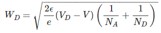 扩散电位产生潜在的屏障,用于进一步迁移自由电子从n型侧迁移到p型侧和从p型侧到n型侧的孔。这意味着扩散电位可防止电荷载流子穿过结。该区域由于该区域的可用电荷载体耗尽而具有高阻电性。耗尽区的宽度取决于所施加的偏置电压。耗尽区域和偏置电压之间的关系可以由称为的等式表示泊松方程式。