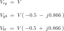 在这里,我们假设了平衡操作,以便我们拥有vry.= V.布尔= V.YB.= v。由于所有相电流的代数总和也是相等的,因此我们可以写入