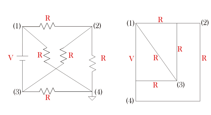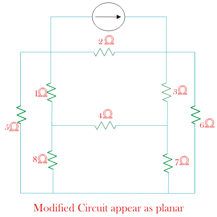 乍一看它看起来像非平面图自二电阻器互相交叉,但它是平面图可以如下所示绘制。