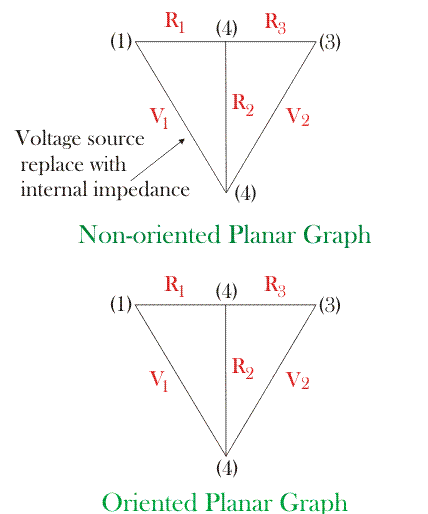 电路中存在的每个元素充当图形的单个分支,而有源源电压源和目前的来源用它们的内部阻抗更换(更换带有短路的电源电源,而用开路替换电流源)。
