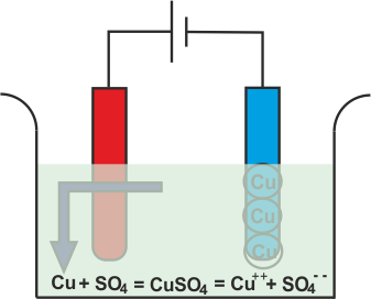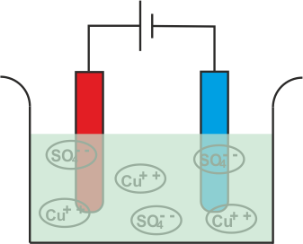 在上述过程中,在采用电子后,中性铜原子被沉积在阴极上。同时,所以4.用铜阳极反应并成为Cuso4.但在水中,它不能作为单个分子而不是那个cuso存在4.将分成铜+ +,所以4.- -并溶解在水中。所以可以得出结论,在用铜电极电解的硫酸铜期间,铜沉积在阴极上,并从阳极中除去相同的铜。如果期间,则硫酸铜电解,我们使用碳电极代替铜或其他金属电极,然后电解反应会有点不同。实际上是如此4.不能与碳反应,在这种情况下也是如此4.将与溶液的水反应,并形成硫酸和释放氧气。