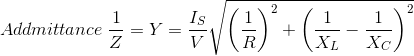 如上所示的阻抗等式中,并联RLC电路的Z各元件具有阻抗(1 / z)即i.e的往复式。导纳,Y.对于求解并行RLC电路,如果我们发现每个分支的入场和电路的总导入通过简单地添加每个分支机构的进入,可以方便。
