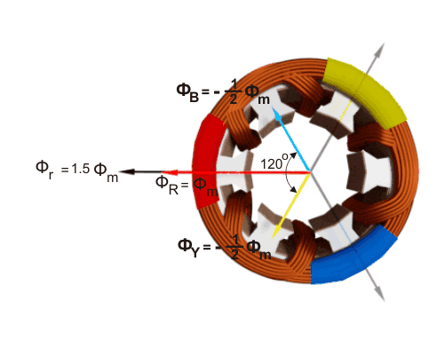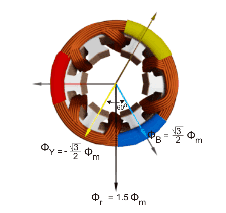 在该瞬间得到这些助熔剂的结果(φR.)是1.5φm如下图所示。在这里,它是透明的,所得通量向量旋转30°的进一步顺时针旋转,而不改变其值。